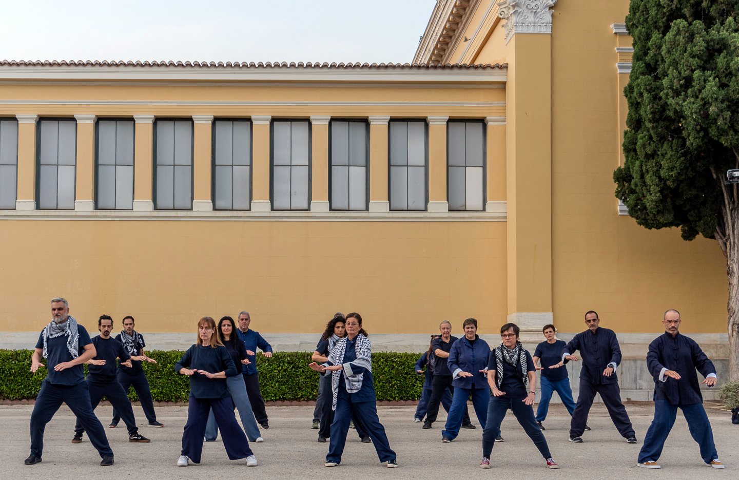 Πραγματικά ήταν πολύ ωραία εικόνα να βλέπεις ανάμεσα στα ανθισμένα δέντρα του κήπου ανθρώπους μικρούς και μεγάλους να κινούνται ισορροπημένα, ήσυχα αλλά και δυναμικά ταυτόχρονα. Η αίσθηση συναδέλφωσης ήταν κυρίαρχη και η αγάπη διάχυτη. Ο καθένας ατομικά αλλά και η συνείδηση της ομάδας συλλογικά, μετέφεραν μια ατμόσφαιρα γαλήνης στους ανθρώπους, που περνώντας, στάθηκαν και αναρωτήθηκαν τι είναι αυτό που παρουσιάζεται μπροστά τους.